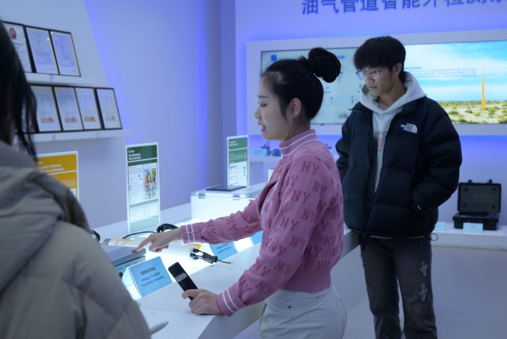 團支部成員們首先參觀了公司的展示中心,全面了解了公司的發展歷程、業務體系、標桿技術以及最新產業布局,學習了管道智能陰極保護系統的研發和運行。高桂飛帶領團支部成員深入智能陰極保護實訓場地和公司的軟件開發、產品檢驗及生產車間。介紹了“管道保護”的先進“黑科技”—智能陰極保護系統,該系統依托智能控制算法,實現站場區域陰極保護智能均衡控制以及“厘米級”的精準檢測定位,提升了區域陰極保護效果,為油氣儲運管道保護開辟了新的技術路徑,加深了團支部成員們對智慧管道建設重要性的認識。