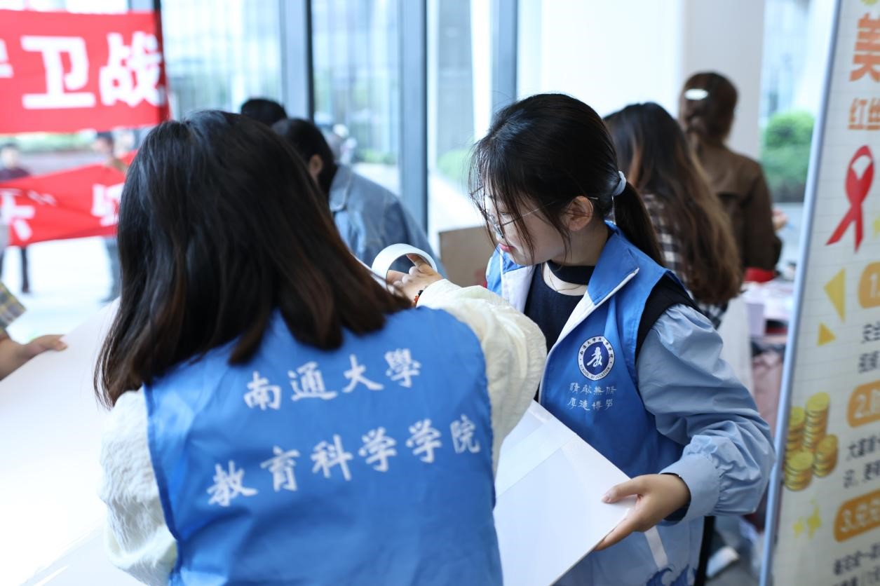 南通大學(xué)教育科學(xué)學(xué)院紅十字會(huì)開展“美好青春我做主”2025年紅絲帶青春校園行防艾攤位
