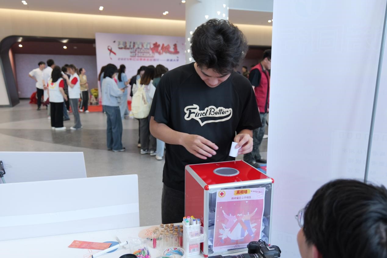 大學(xué)生校園網(wǎng)5月9日電(通訊員楊瑞)為弘揚(yáng)“人道、博愛、奉獻(xiàn)”的紅十字精神,提高大學(xué)生對(duì)艾滋病的認(rèn)知,消除部分學(xué)生對(duì)艾滋病的誤解,南通大學(xué)教育科學(xué)學(xué)院紅十字會(huì)于2025年5月8日在“美好青春我做主”2025年紅絲帶青春校園行活動(dòng)中開展了防艾攤點(diǎn)。攤點(diǎn)分設(shè)拼圖簽名墻、對(duì)話漂流瓶留言墻、“粉碎偏見”盲盒三個(gè)板塊,吸引了大批學(xué)生踴躍參與,讓防艾知識(shí)在輕松愉快的氛圍中深入人心。