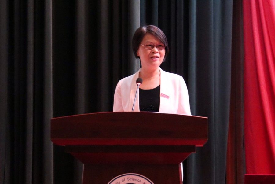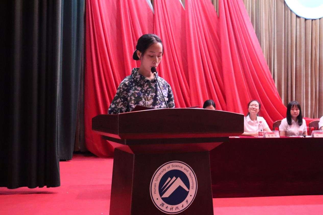 禹旭才以《心懷“國之大者”,爭當“國之大才”》為題發表講話,結合“唯實惟新,至誠致志”的科大校訓,鼓勵新生們從大處著眼,從小處著手,胸有“至誠心”,懷揣“致志情”,腳踏“唯實路”,書寫“惟新篇”。她說道:“請同學們用實際行動詮釋‘我命由我不由天’的豪情壯志,用實際行動證明‘請黨放心 強國有我’的時代擔當,在思想淬煉、專業訓練、實踐鍛煉中成長為硬核瀟湘人!”