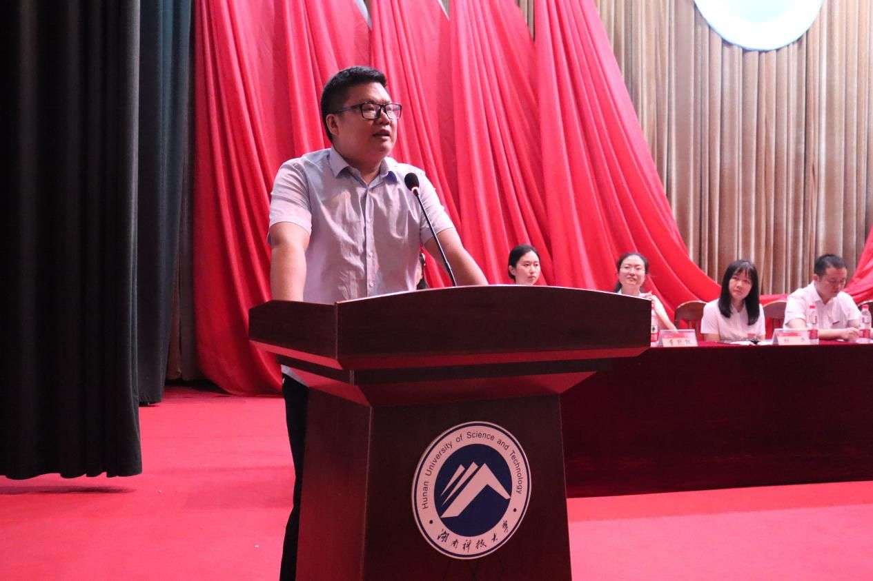 作為專業教師代表人文系副主任聶志軍表達了他作為一名人文社科教師對“瀟湘”一詞的理解,并以“瀟湘三解”引出“人生三境”。他表示,同學們來到瀟湘學院要體驗人生的三重境界,即一切過往,皆為序曲;立足湖南,著眼全國;不忘初心,腳踏實地。“愿你們在這鮮活而張揚的年紀,豪言不枉此生。”聶志軍滿懷激情地說道。