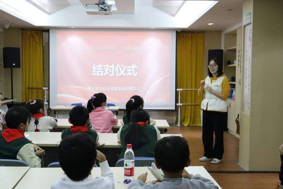 為響應習近平總書記在黨的二十大報告中提出的完善志愿服務制度和工作體系的要求,11月20日下午,浙江財經大學經濟學院與白楊街道晨光社區大學生志愿實踐基地共建儀式在晨光社區黨群服務中心舉行,參加本次儀式的有晨光社區黨支部書記楊君,晨光社區團支部書記吳媛紅,晨光社區團支部副書記曹靜,學院學生辦公室主任李伶俐,學院團委書記曹仲曄,學院志愿者及社區兒童們,儀式由曹靜書記主持。