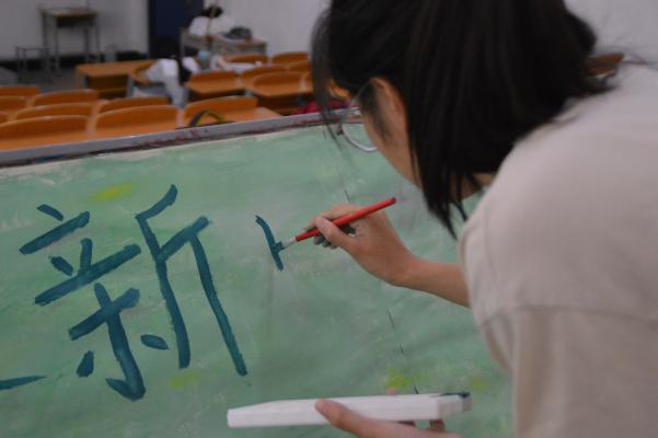 支部同學分工明確,有負責采購繪圖材料的同學清點分配材料,也有擅長繪畫的同學負責繪制展板,還有擅長書法的同學在展板上題寫此次活動的主題。