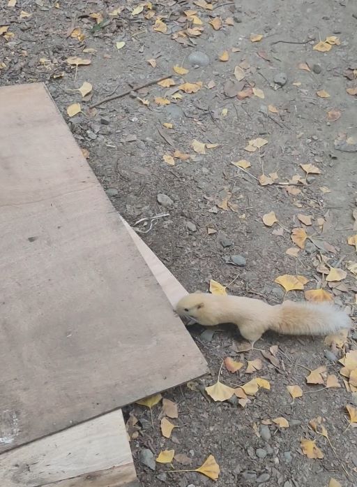 在沿著圖書館那邊的樹林散步時偶然發現一只松鼠抱著木板啃: