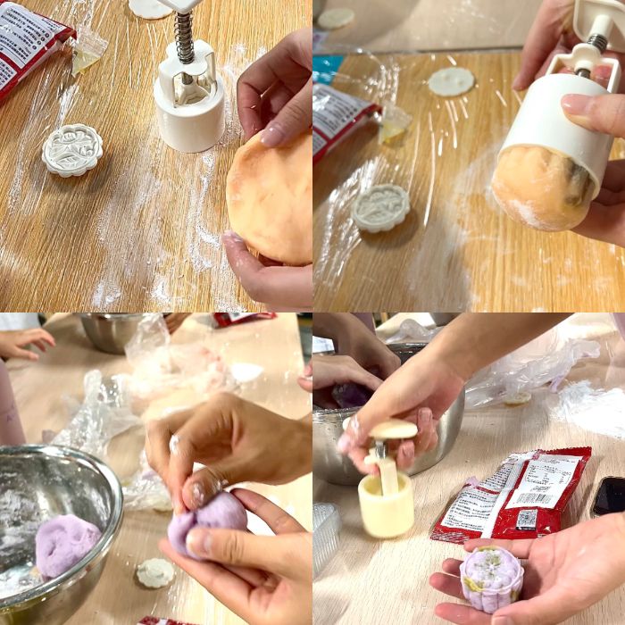 (圖為支部成員正在進行月餅壓模 藍靈巧 供圖)