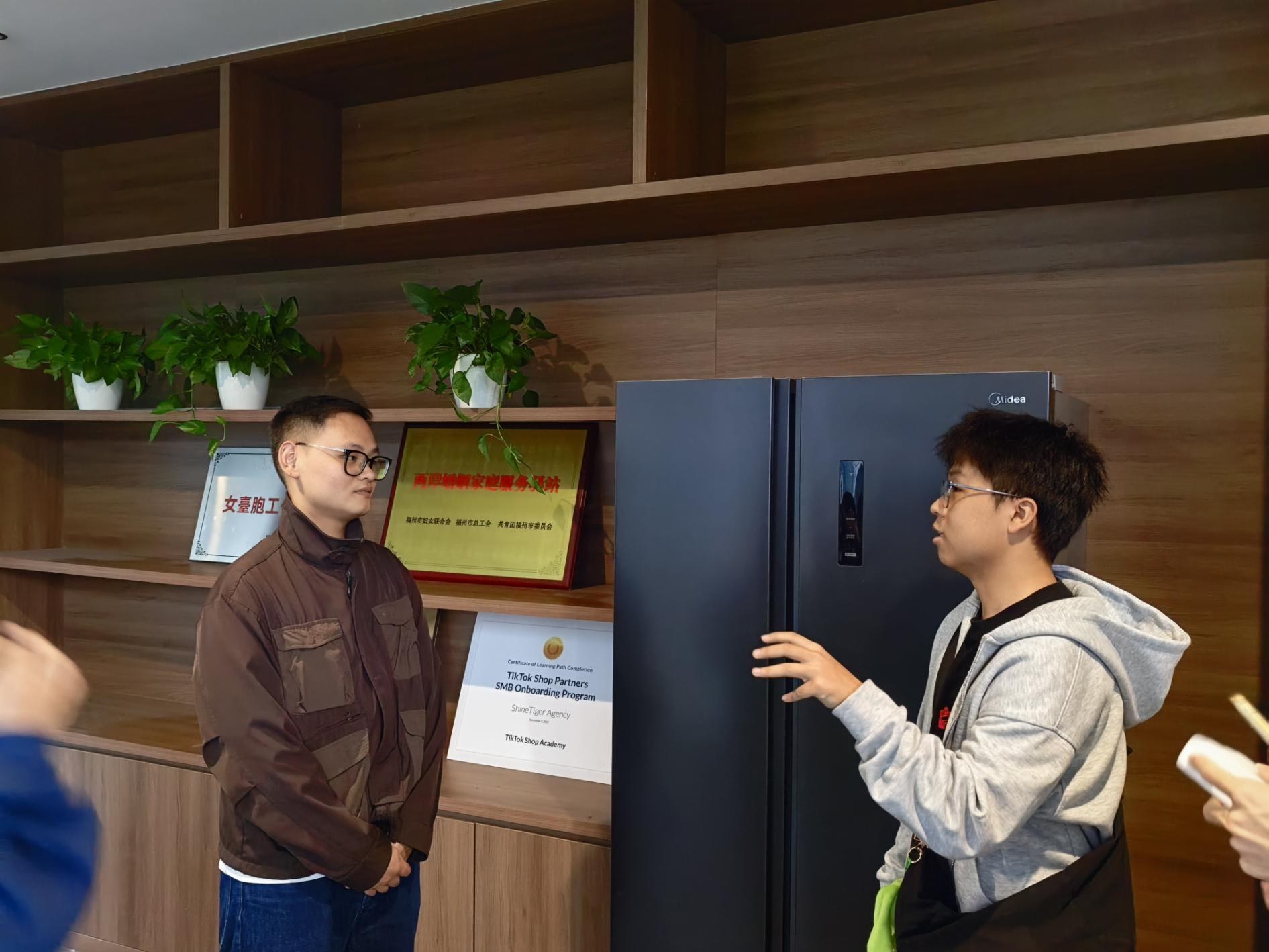 “躬行百企訪談百賢”環節讓團員們走進科創一線。大家實地走訪中心內兩岸合作的智能制造、跨境電商、文化創意類企業,直觀觀察跨境直播基地及聯合研發實驗室的運作模式,詳細記錄企業在技術融合、市場對接中的創新做法。在與兩岸項目核心員工的深度交流中,團員們圍繞“兩岸團隊協作模式”“跨地域溝通技巧”“科創項目融資難點”“青年人才培養策略”等問題展開提問,訪談對象以真實案例分享經驗。一位臺灣工程師的分享讓大家深受啟發:“兩岸技術團隊互補性強,大陸市場廣闊與臺灣研發優勢結合可實現1+1>2。”鮮活的實踐案例讓學生對閩臺科創合作的現實價值有了更深刻的認知。