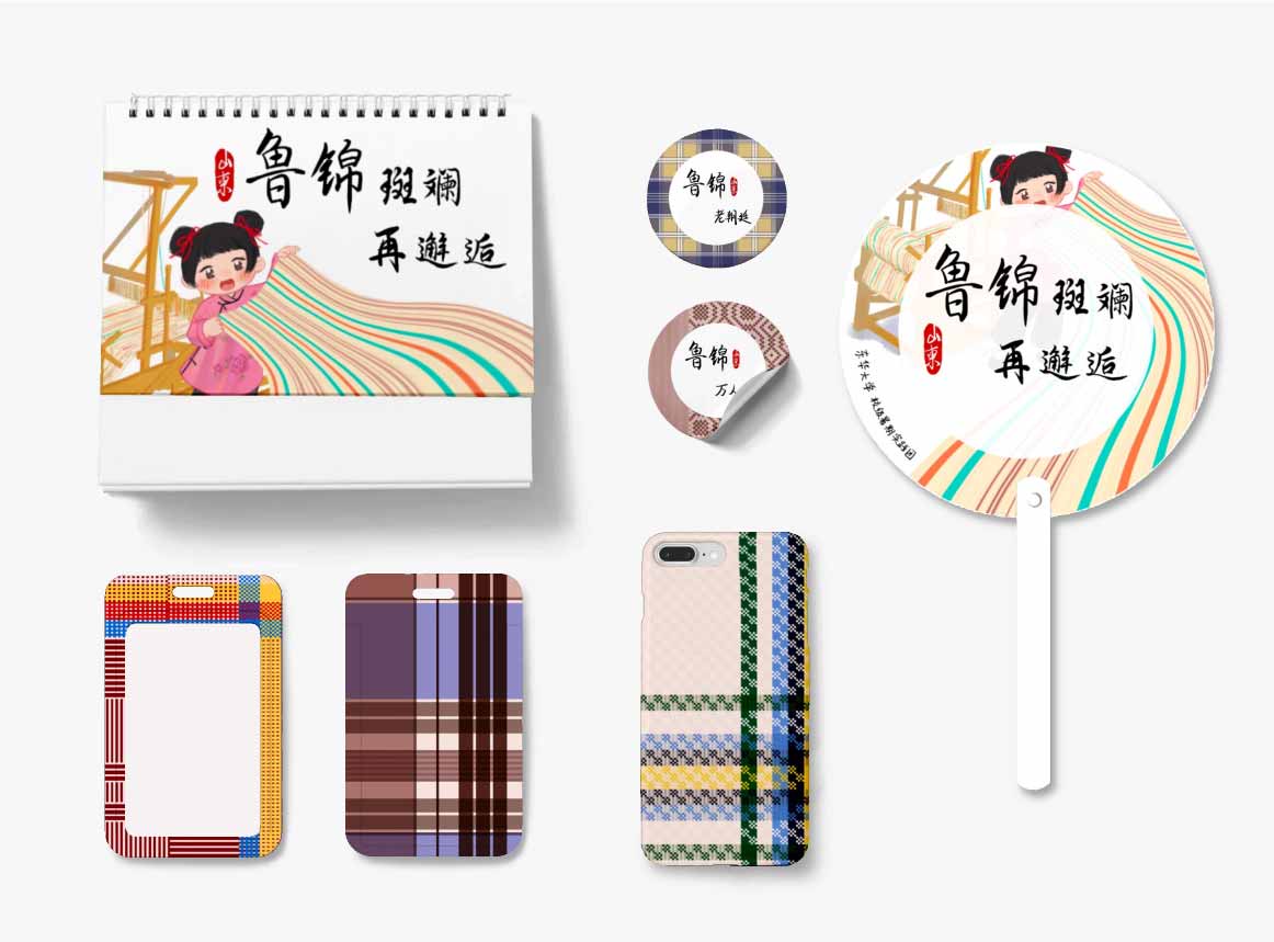 對象為春秋源館長的采訪,意在了解博物館的發展現狀、博物館在運營過程中遇到的問題,以及之后博物館的發展方向。而針對非遺傳承人趙芳云女士的采訪則圍繞目前魯錦發展現狀、魯錦工藝發展的最大阻礙、目前魯錦現代化生產與傳統手工藝的這種生產方式之間的矛盾、工藝的傳承情況以及傳承中的青年參與度、對于魯錦的發展受阻問題的相關建議等方面。在針對博物館現場游客的采訪調查中,實踐團成員將采訪目標定位于三類人群,分別為本地人、帶孩子的以及老人。此次實踐內容也包括了魯錦相關文創的設計,將魯錦文化應用在現代化產品中,包括魯錦徽章、魯錦手機殼、日歷等。這些文創將會在采訪及講解活動過程中進行發放,以增加活動的趣味性及激勵性。