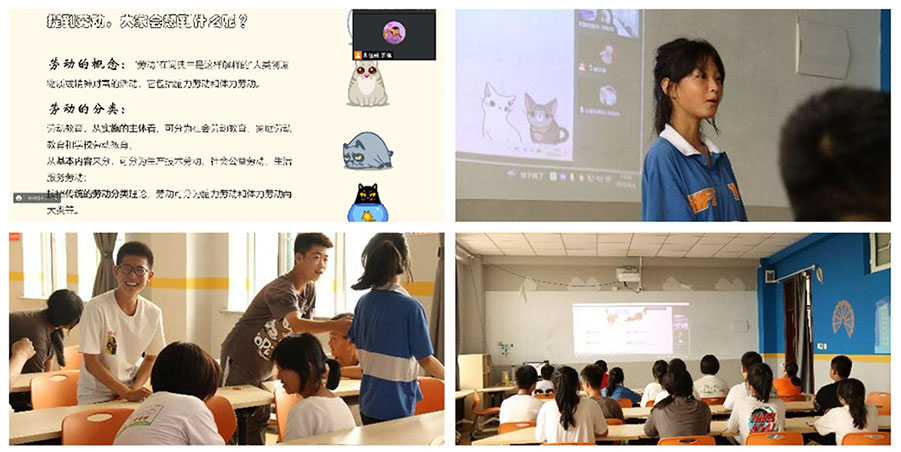 這是在勤實踐團宣傳組同學們為小朋友們進行線上勞動課程宣講時的場景,在技術組進行技術開發的同時,他們利用身邊的資源,走進課堂,向小朋友們傳遞愛勞崇勞的理念。而為了讓自己的宣講內容更加有趣,使其更貼合小朋友們,實踐團的成員們也進行了充足的準備,在其中加入有趣的元素,力爭讓整個宣講過程活潑生動。