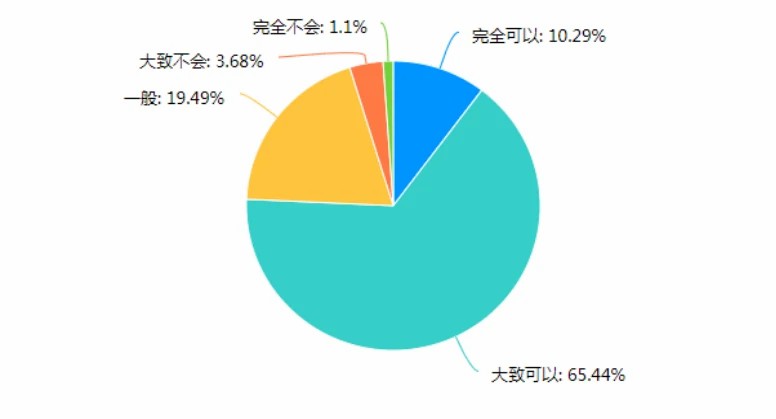 大多數大學生擁有較好的自我調節能力,并對自我調節能力充滿信心。10.29%的大學生認為自己“完全可以”短時間內進行自我調整,65.44%的大學生認為自己“大致可以”短時間內進行自我調整,而選擇“一般”“大致不會”“完全不會”的大學生分別占比19.49%、3.68%、1.1%,合計約25%。