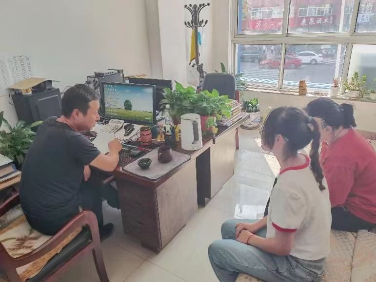 (圖為遼寧朝陽志愿者們采訪當地殘聯負責人。 光盲之路社會實踐團隊 白天宇 攝)