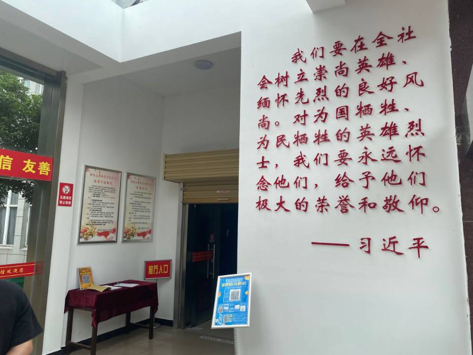 同時,我們團隊也了解到了土地革命戰爭時期,和縣的有關對策。還了解到和城解放的具體時間,也知道了抗日戰爭的不易與困難。但我們一直相信我們共產黨能取得最后的勝利。其次,了解的了我們和縣的支部成立時間。然后,我們團隊參觀了一些重要有關抗日解放的戰役:百旺市殲滅戰、南義爭奪戰。同時,也參觀了有關和縣的革命烈士,如:張智錦、葛國孝、孫必春等。當我們了解到他們的革命事跡,我們不禁對他們產生了強烈的敬畏之心。我們也參觀了日軍對我們革命烈士的刑訊室,可以看出他們對我們非常的殘忍。同時警示著我們,一輩子不能忘記這些痛,警示著我們奮發圖強,自強不息,只有自己強大,才不會受欺負!最后我們參觀了習近平基于烈士的話:我們要在全社會樹立崇尚英雄、緬懷先烈的良好風尚。對為國犧牲、為民犧牲的英雄烈士,我們要永遠懷念他們,給予他們極大的榮譽和敬仰。