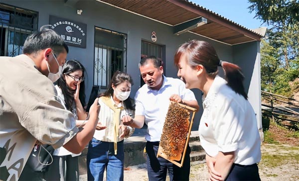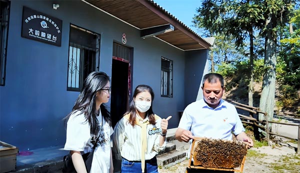 8月13日,團(tuán)隊(duì)成員張夢(mèng)、楊夢(mèng)嫣前往當(dāng)?shù)匾粦艮r(nóng)村養(yǎng)蜂個(gè)體戶進(jìn)行調(diào)查參觀,期間,團(tuán)隊(duì)成員跟隨這戶主人參觀了蜂箱與蜂蜜制作間等,同時(shí)向其宣傳黨的領(lǐng)導(dǎo)、國(guó)家制度的優(yōu)勢(shì)、人民力量的關(guān)鍵作用。在此次調(diào)查采訪過程中,感受到了國(guó)家政策對(duì)農(nóng)村個(gè)體戶的關(guān)照,也感受到了民眾對(duì)于國(guó)家政策的擁護(hù)。