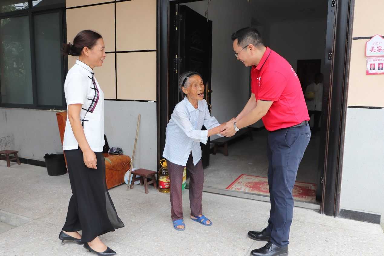 會后,眾人攜糧油到木腳村當地光榮在黨50年的老黨員家中進行走訪慰問,表示敬意與感恩。質樸村民們用西瓜回應實踐團人熱情,雙方促膝相談甚歡。通過與老黨員們的交談,實踐代表團隊們重溫歷史,領悟黨性。一名黨員就是一面旗幟,本次走訪激發了實踐團成員擔當時代重任的使命感、筑牢樹立遠大理想的堅定感,激勵實踐團隊成員們努力成長堪當民族復興重任的時代新人。