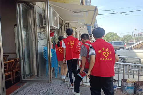 志愿者們不畏高溫酷暑,挨家挨戶為民眾送上“普法宣傳冊大禮包”,包括《民法典》宣傳冊及學(xué)生學(xué)習(xí)用品。面對民眾關(guān)于讀本上法律知識(shí)的咨詢,法學(xué)專業(yè)志愿者用通俗易懂的語言耐心為民眾解答。此外,志愿者通過咨詢當(dāng)?shù)鼐用窳私獾剑鐓^(qū)會(huì)時(shí)常通過組織普法講座,工作人員上門講解等方式提高民眾法律素養(yǎng)、法制意識(shí)。