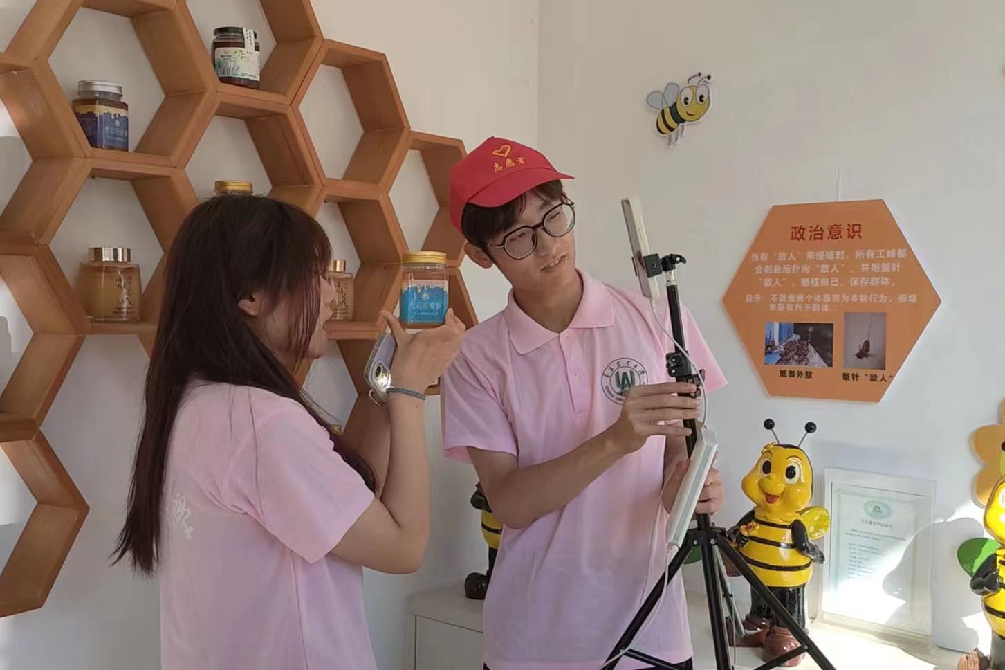 圖為實踐隊員直播講解蜜蜂養殖知識。