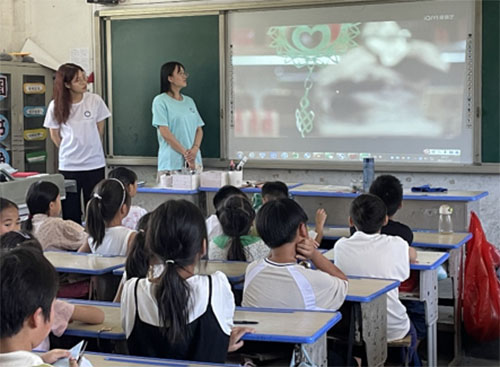 首先,志愿者向同學們認真講解了什么是非物質文化遺產,非物質文化遺產的形式以及我國部分非物質文化遺產。他們通過展示豐富生動的圖片和視頻,讓孩子們在這些栩栩如生的畫像下對中國的非遺文化產生了濃厚的興趣。