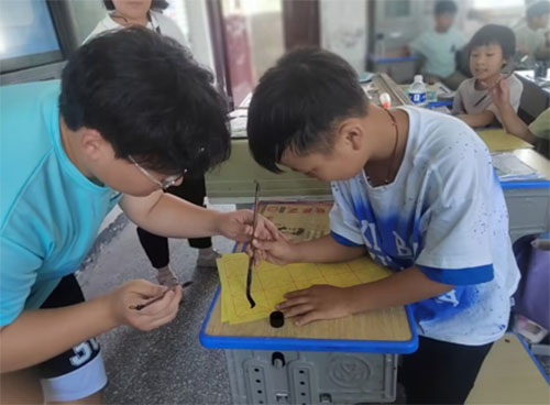 圖為志愿者教小朋友寫毛筆字