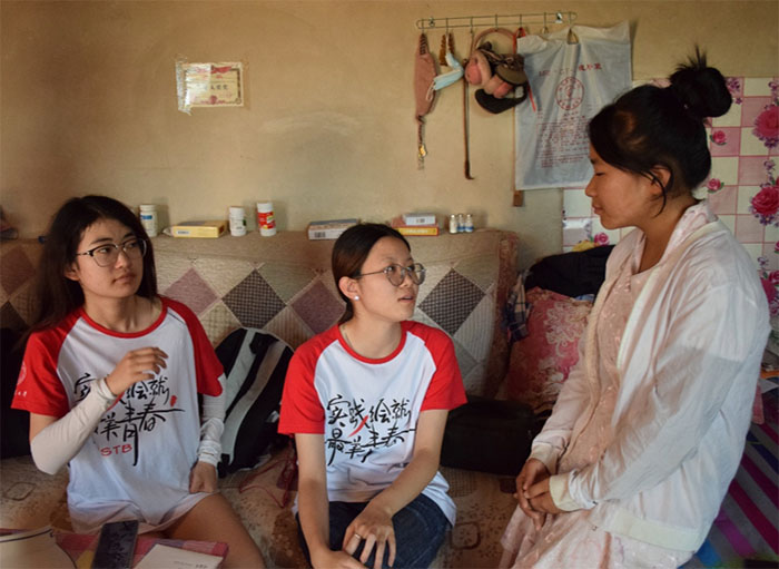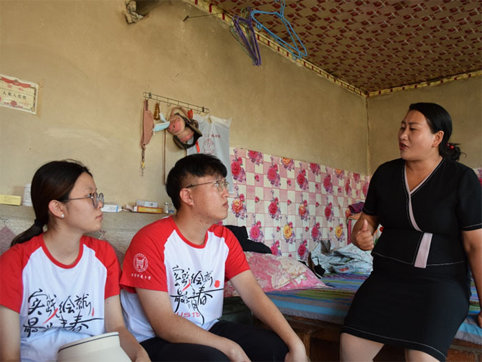 圖為實踐團成員向院長了解受訪家庭情況。大學生校園網通訊員 柴嘉梁 攝