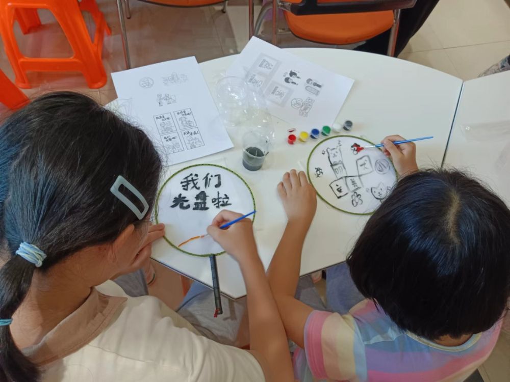熱火朝天的討論后,宣講同學開始對團扇文化進行講解,講述了它的由來與發展,以及與團扇相關的禮儀。講解完畢后,實踐團成員向小朋友們分發空白團扇和顏料,并協助他們一起創作與文明禮儀有關的團扇圖案。