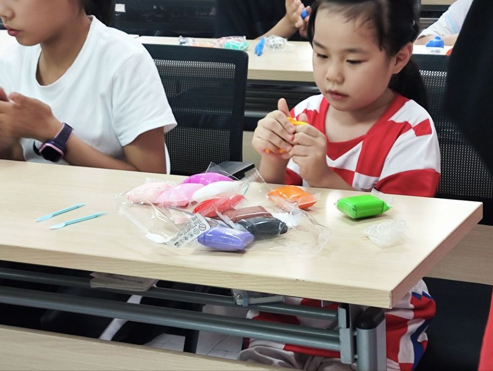 最后是小朋友們最喜歡的環節——動手實踐。實踐團成員給小朋友們分發超輕黏土,并提供亞運會吉祥物的照片,幫助他們一起捏制黏土。五顏六色的黏土在他們靈巧的雙手中,化成或可愛或霸氣的形象。