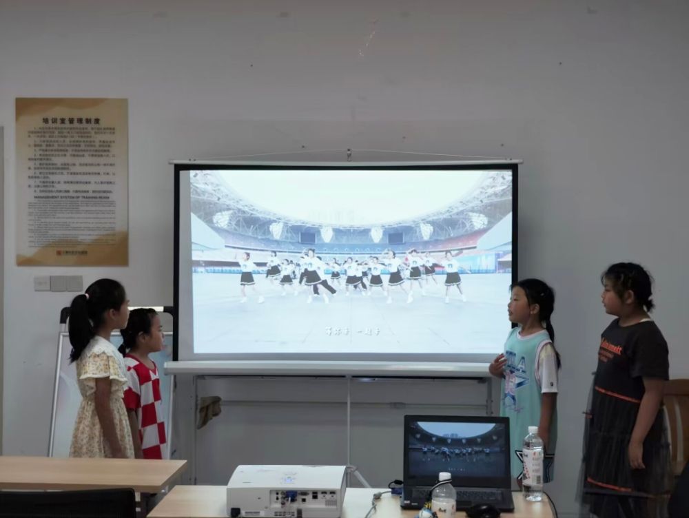 趁著這股興奮之情,宣講同學播放亞運會主題曲《等你來》的音頻,鼓勵小朋友們學習、跟唱歌曲。在激昂的旋律中,小朋友們稚嫩的歌聲伴著曲調,“等你來,一起來”的歌詞敲打著人們的心弦,仿佛亞運會的開幕近在咫尺,對于亞運的熱情在這瞬間燃起。幾個小朋友被邀請上臺演唱,他們格外認真,毫不露怯,贏得了大家的贊揚。