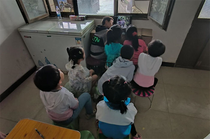 圖為小朋友們進(jìn)行紅色觀影 中國(guó)青年網(wǎng)通訊員 楊雪 攝