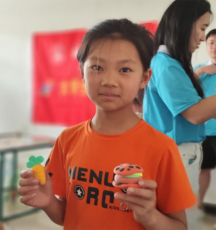 活動(dòng)剛開始進(jìn)行的時(shí)候,孩子們顯得格外拘束,而志愿者們的耐心溝通,使得每個(gè)小朋友都積極地參與到活動(dòng)之中來。他們有著豐富的想象力,在工藝品制作過程中,志愿者們看到了孩子們仔細(xì)、認(rèn)真的態(tài)度。