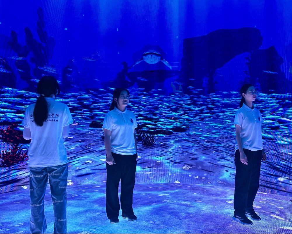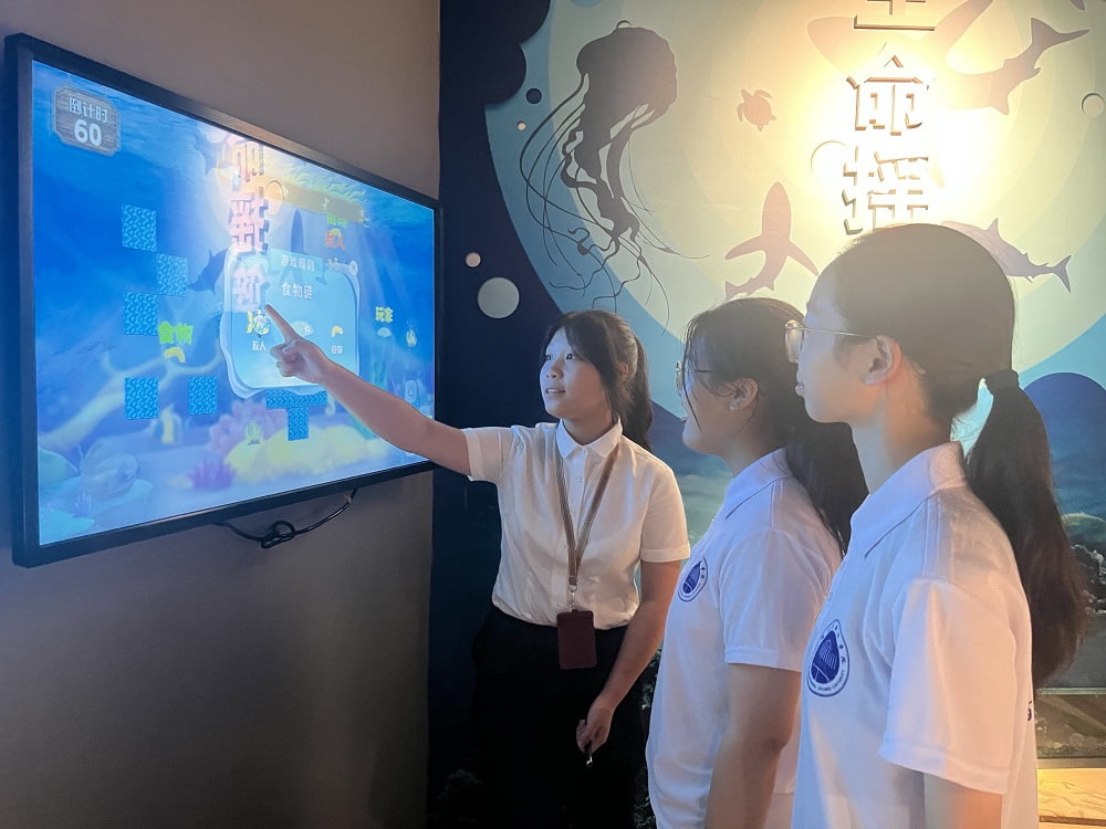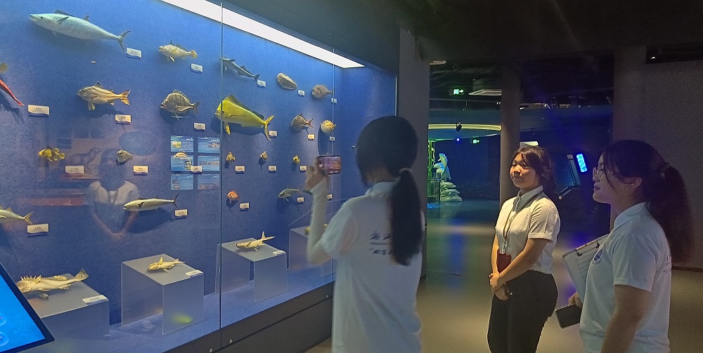 隊員們參觀海洋館南麂島海洋館強調(diào)科普教育的重要性,試圖喚起人們對海洋環(huán)境的關(guān)注。通過展示海洋生態(tài)系統(tǒng)的藍色碳匯功能,向公眾傳達了海洋生態(tài)系統(tǒng)對緩解氣候變化的重要性。游客們可以了解海洋如何吸收和儲存大量CO2,從而加深對藍碳概念的認知。