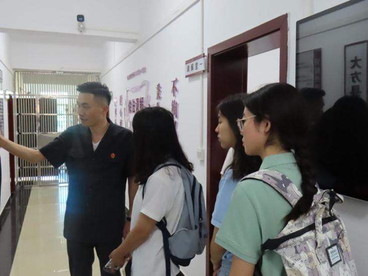7月17日下午,在紅安縣法院夏主任的帶領下,實踐隊員和當地青年干警展開了積極交流,并參觀了當地特色法庭——占店法庭。