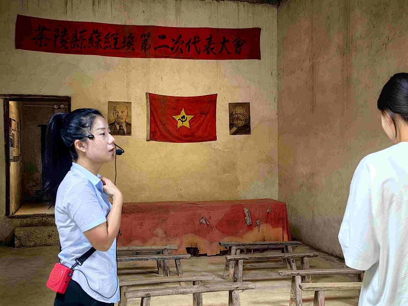 圖為講解員為團(tuán)隊(duì)成員介紹蘇維埃政府舊址 中國(guó)青年網(wǎng)通訊員 王昕怡 攝