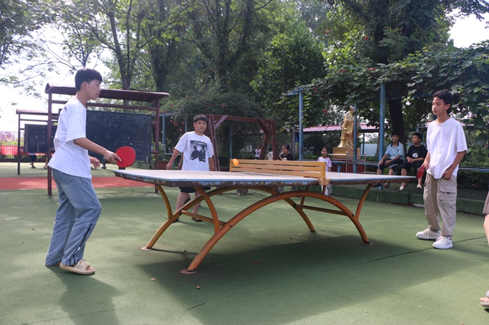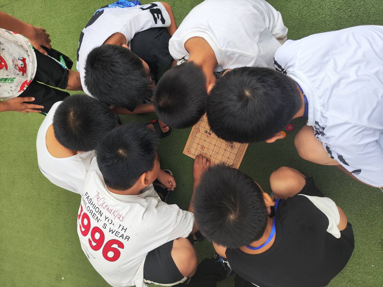 隨著下課鈴聲驟然響起,校園瞬間化身熱鬧的歡樂場。瞧,乒乓球桌旁,三五個同學圍作一團,他們的目光緊緊追隨著乒乓球的跳躍軌跡,時而歡呼,時而緊張。再看那邊,又有三五成群的同學聚在一起,湊近一瞧,原來是在下象棋,楚河漢界間盡展謀略的對決。還有跳繩的同學,那繩子在空中快速飛舞,如同彩蝶翩翩;踢毽子的同學,毽子在他們腳間輕盈起落,似靈動的音符。此刻,校園里的熱鬧氣氛達到巔峰,處處洋溢著蓬勃的生機,展現著青春的活力與無限可能!