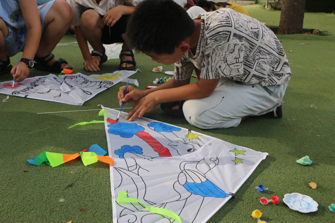 有的孩子細心地為風箏涂上了五彩斑斕的彩虹,每一道色彩都像是他們心中對美好生活的向往與期待;有的孩子則選擇了卡通人物作為主題,用稚嫩卻充滿靈氣的筆觸,為風箏賦予了生動的故事與情感,展現了他們純真無邪的內心世界。整個活動現場瞬間變成了一個色彩斑斕的童話世界,每一聲歡笑、每一筆色彩,都是孩子們對未來生活的美好憧憬。