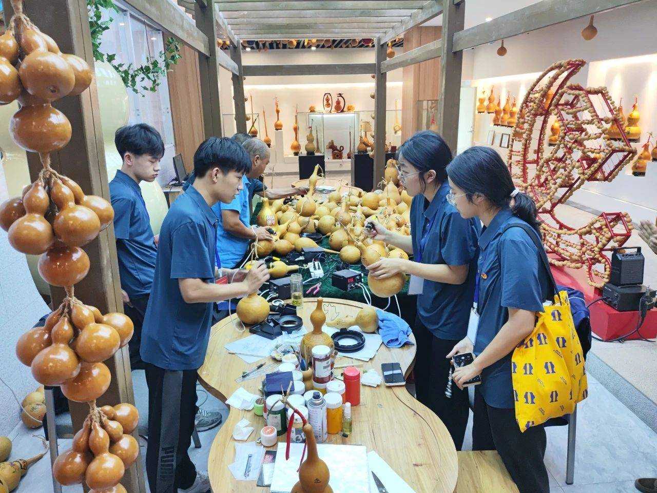 在非遺傳承人的悉心指導下,實踐隊員親手執起烙鐵,于葫蘆之上勾勒線條、點染色彩,在每一次筆觸間感受非遺傳承人對藝術的執著追求與無私奉獻。這不僅僅是技藝的傳授,更是精神的傳承,是匠心與匠魂的交融,讓實踐隊成員深刻體會到了“守藝”二字的重量與溫度。
