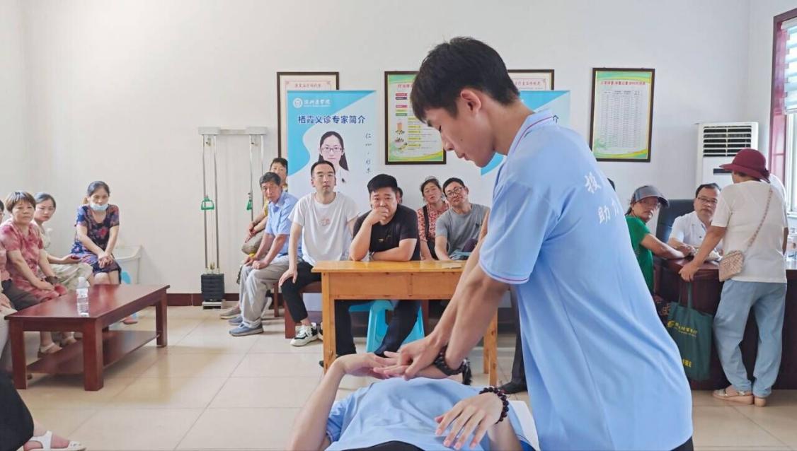 醫(yī)療服務(wù)是保障居民們健康的重要基石,隨著社會經(jīng)濟(jì)的發(fā)展,農(nóng)村地區(qū)的醫(yī)療條件雖然得到了一定改善,但與城市相比仍存在差距,許多農(nóng)村居民缺乏基本的醫(yī)療保健知識,對疾病的預(yù)防和治療認(rèn)識不足。秉持醫(yī)者仁心,我們“醫(yī)路先鋒”實踐團(tuán)隊深入鄉(xiāng)村地區(qū)開展中西醫(yī)免費義診活動,為當(dāng)?shù)鼐用駧砹藢嶋H的醫(yī)療幫助。實踐團(tuán)隊的專家們?yōu)楫?dāng)?shù)鼐用駛兲峁┟赓M的中西醫(yī)診療服務(wù),設(shè)立了一對一咨詢臺,為居民解答健康問題。西醫(yī)方面,對常見疾病進(jìn)行診斷,開具處方并提供用藥指導(dǎo);中醫(yī)方面,進(jìn)行中醫(yī)的體質(zhì)辨識和脈象診斷,并提供針灸、推拿、艾灸等傳統(tǒng)中醫(yī)療法。同時,實踐隊員為居民提供測量血壓、血糖等基本生理指標(biāo)的服務(wù),并發(fā)放疾病預(yù)防手冊、中醫(yī)保健知識傳單等。除此之外,實踐隊員還為居民講解了如何實施心肺復(fù)蘇術(shù)、海姆利克急救法、壓迫性止血等日常急救方法,深入介紹了心肺復(fù)蘇術(shù)的步驟和注意事項;針對呼吸道阻塞,實踐隊員就如何處理窒息等呼吸道阻塞問題的方法,詳細(xì)演示了如何實施后背叩擊法和人工呼吸法等;針對于出血控制,實踐隊員深入介紹了如何正確處理出血問題,包括使用止血帶、施行壓迫止血等方法,拓展了日常急救知識。通過此次“醫(yī)路先鋒”實踐團(tuán)隊的中西醫(yī)義診活動,我們不僅為農(nóng)村居民帶去了切實的醫(yī)療服務(wù),更在他們心中種下了健康與希望的種子。