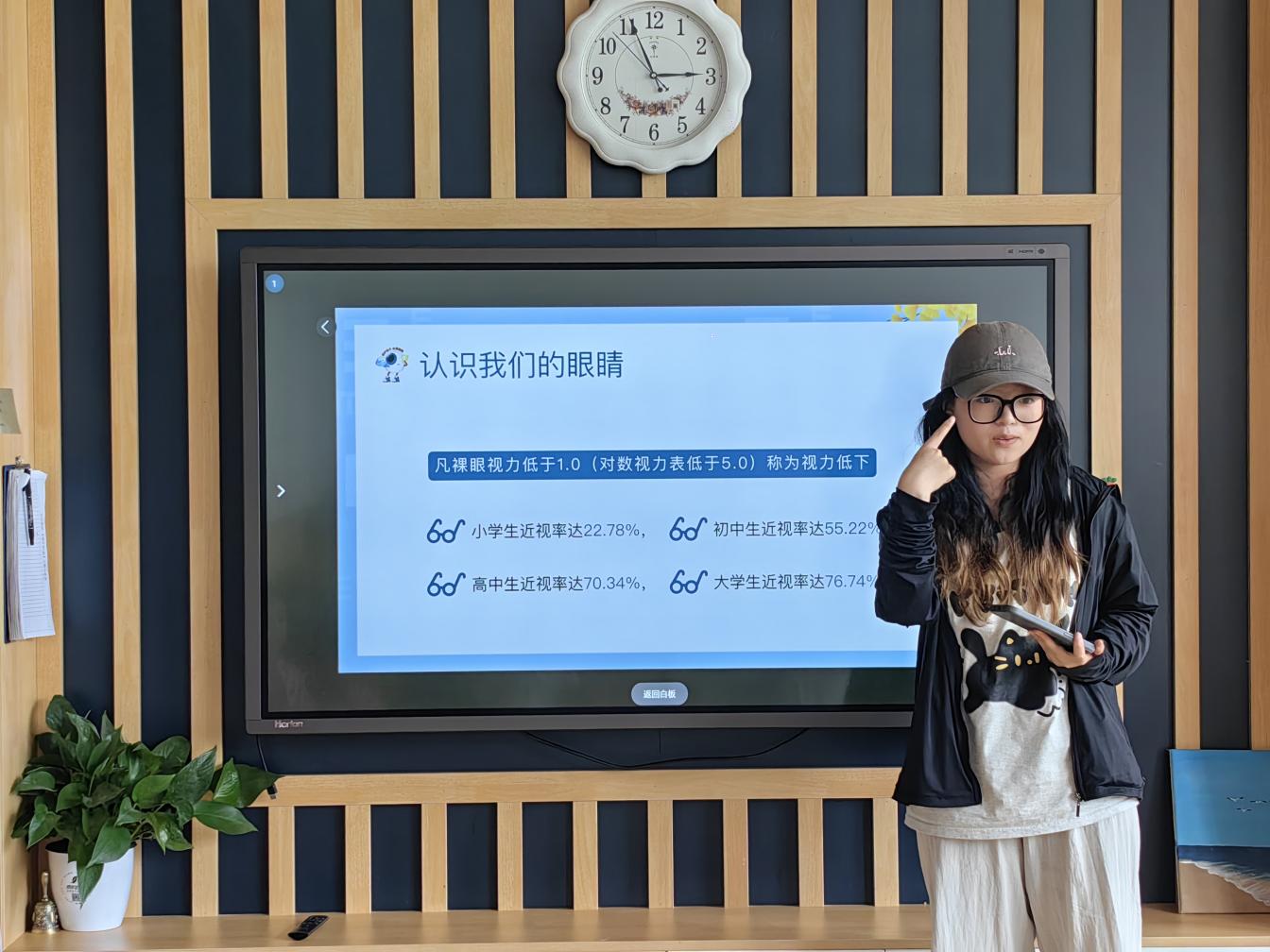 實踐隊員對預(yù)防近視進(jìn)行宣講