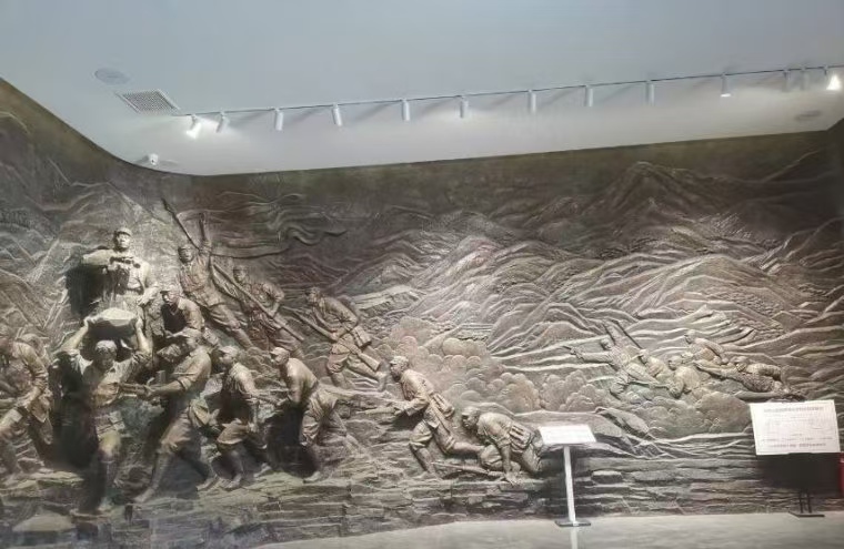 紀念館的外觀質樸而大氣,猶如一位沉默的衛士,靜靜矗立在這片浸染過烈士鮮血的土地上。步入館內,首先映入眼簾的是一幅巨大的浮雕,刻畫著戰士們沖鋒陷陣、百姓奮勇支前的場景,每一處線條都飽含著力量,生動地再現了當年驚心動魄的戰斗畫面,讓人真切感受到革命先輩們為了民族解放而舍生忘死的堅定信念。