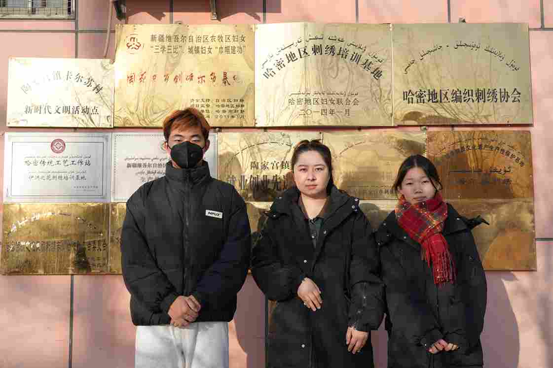 隊員有幸采訪到合作社的法人代表布爾汗·阿布利孜先生。此次采訪旨在通過他的親身經歷與獨到見解,剖析哈密刺繡的現狀與未來。據布爾汗·阿布利孜先生講述,哈密刺繡在他的里家族世代傳承,其太奶奶曾是哈密回王府宮廷繡師,母親是第五代傳承人。他和妹妹自幼隨母親學習刺繡,起初制作傳統服飾,后根據市場需求制作花帽、枕頭等實用品。從小作坊起步,因身邊人紛紛學習,影響力擴大,當地政府出資擴建工廠。獲得 37 項國家外觀設計專利證書和 20 余項各級榮譽。目前,合作社擁有來自吐魯番、阿克蘇、和田及哈密本地的固定客戶。但布爾汗·阿布利孜先生講,合作社近期發展不如過去,受經濟下行壓力、消費者購買意愿下降影響,生產和銷售規模縮減。他通過計劃規范和改善網絡銷售渠道,拓展淘寶、抖音等電商平臺,讓更多消費者接觸到真正的哈密刺繡,