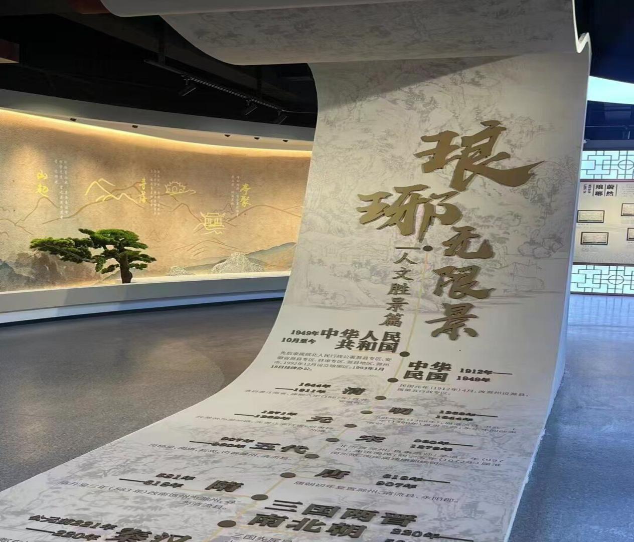 在記憶館工作人員的熱情接待和專業(yè)講解下,小分隊(duì)成員們有序地進(jìn)入館內(nèi)參觀。一踏入序廳,大家就被獨(dú)特的設(shè)計(jì)所吸引,利用線條勾勒出亭的形態(tài),讓人仿佛置身亭中,突出表現(xiàn)了滁州作為中國(guó)亭城的亭文化,營(yíng)造出一種亭城四面景的獨(dú)特氛圍。