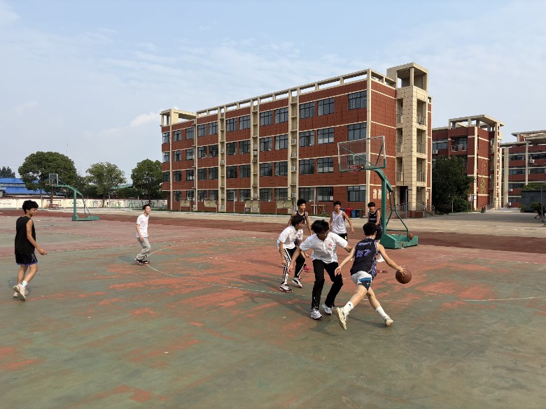 圖為志愿者與學生們在籃球場上揮灑汗水。 王心語供圖