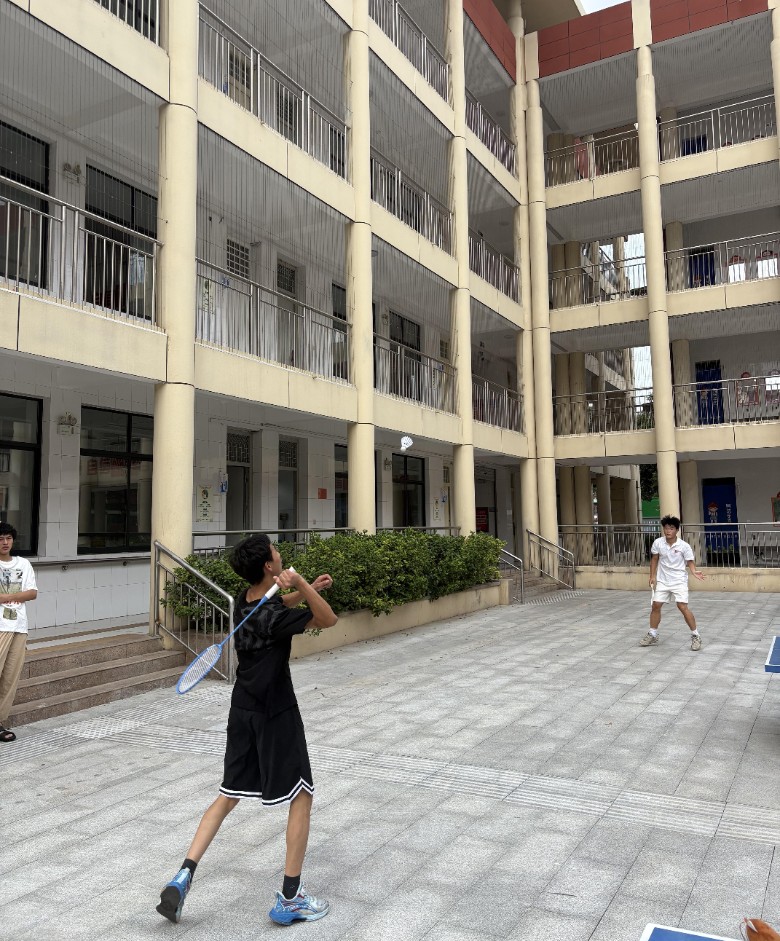 圖為志愿者與學生們互動交流羽毛球技術。 柴灝明供圖