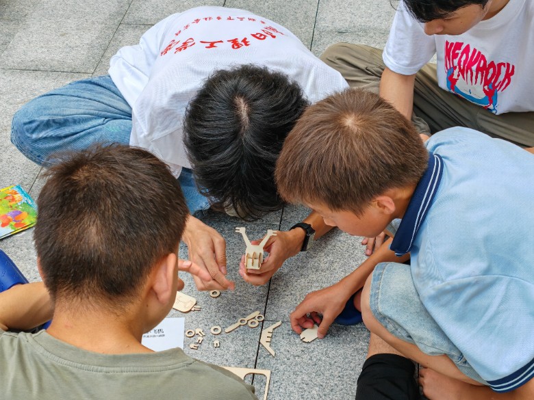 圖為志愿者與學生們一起做益智手工。 李宏宇供圖