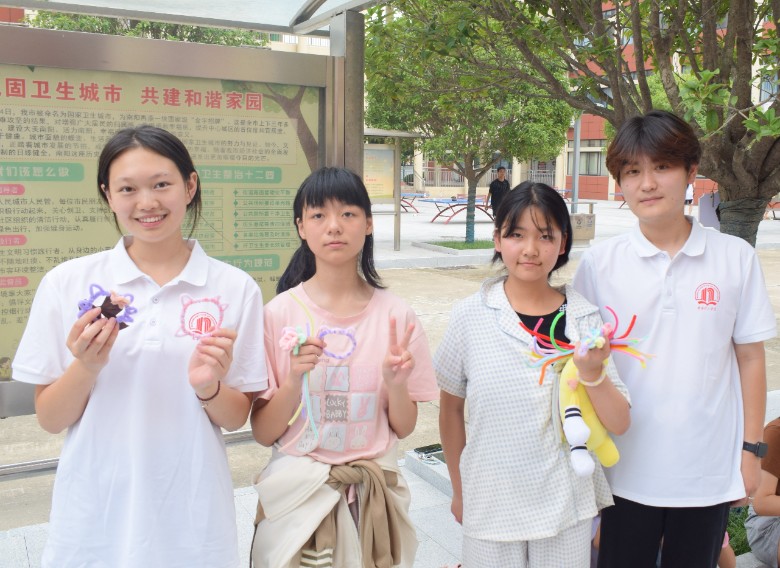 圖為志愿者與學生們展示手工創作成果。 李宏宇供圖