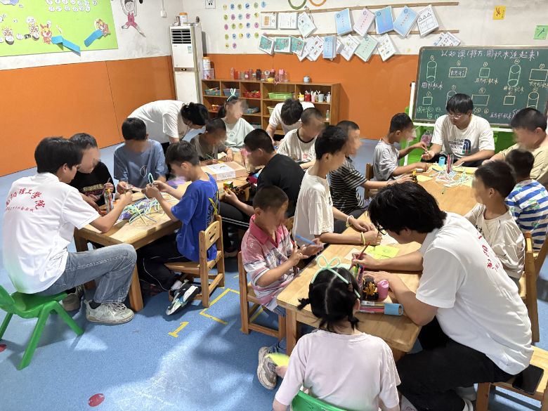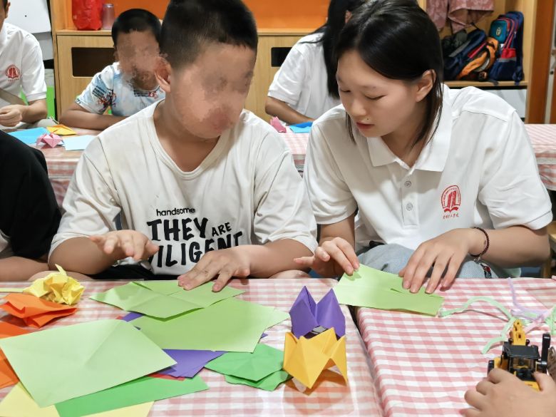 6月28日至29日,南陽理工學院土木工程學院“星語”實踐服務隊前往南陽弘玉特殊兒童康復中心開啟了一場充滿愛與溫暖的暑期社會實踐活動,用愛心與陪伴為孩子們的夏日增添絢麗色彩。活動聚焦智力殘疾兒童,通過扭扭棒手工創作、繪畫和折紙等豐富多彩的項目,簡單的手工制作化作社交“鑰匙”,開啟歡樂互動的樂享時光。孩子們跟著志愿者在游戲中提升溝通技能與情感交流,用他們的獨特的方式表達對志愿者的愛,每一刻的陪伴,都傳遞著溫暖與關懷。幫扶殘障兒童不僅是一次簡單的公益志愿活動,更是一次心靈的觸動,志愿者們用實際行動呵護來自星星的孩子們,守護不完美的完美,讓更多的人給予他們更多的關注與關愛。相信這份愛與溫暖,會如同夏日的陽光,不斷助力殘障兒童追逐夢想、向陽生長。