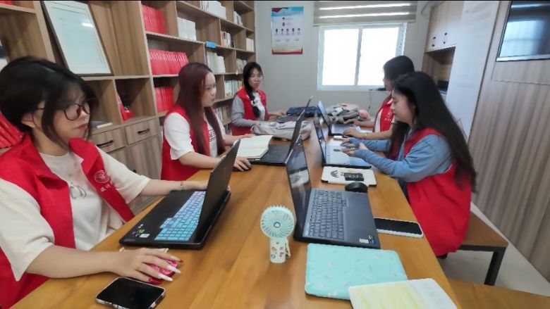 社會實踐隊觀看大坪村介紹影片