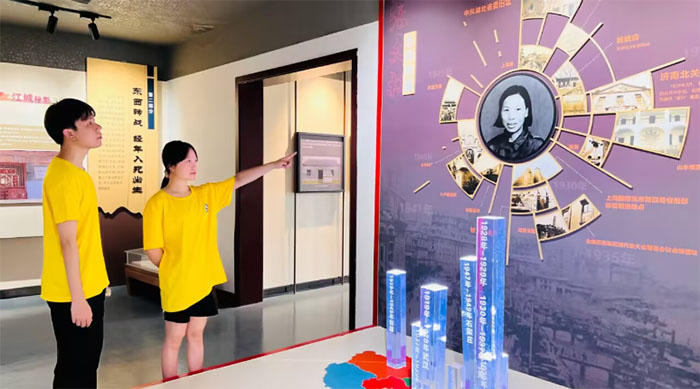 踏入張文秋故居,展廳內首個展區“沖破桎梏步入革命生涯”映入眼簾。這里展現了張文秋同志掙脫封建枷鎖,勇敢投身革命的果敢與決絕。泛黃的照片、陳舊的信件,無一不在訴說著她初涉革命時的堅定信念。志愿團隊的成員們駐足凝視,仿佛能看到那個年輕而勇敢的身影,在時代的浪潮中奮勇前行。