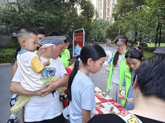 傍晚時分,實踐隊將文化傳播的舞臺搬至香榭麗花園社區。他們精心策劃了“紅色主題猜謎”互動活動,將黨史知識、紅色故事融入趣味謎題。活動吸引了眾多社區居民熱情參與,現場氣氛熱烈,歡聲笑語不斷。這種寓教于樂的形式,讓紅色記憶在輕松愉快的鄰里互動中得以重溫,有效拉近了紅色文化與基層群眾的距離。