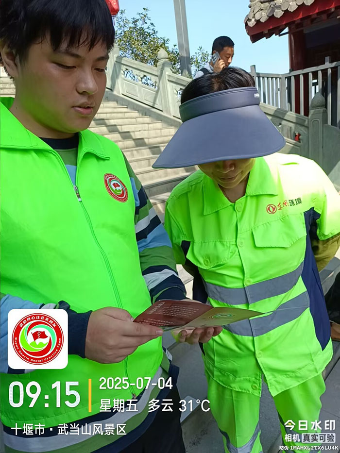 2025年7月4日,晴空萬里,武當(dāng)山腳下,湖北醫(yī)藥學(xué)院第四臨床學(xué)院武韻丹心社會(huì)實(shí)踐隊(duì)的身影格外亮眼。清晨的武當(dāng)山被薄霧輕輕籠罩,隊(duì)員們懷揣著精心準(zhǔn)備的紅色文化宣傳冊,穿梭在山間步道與游客聚集處,將承載著歷史記憶的文字一頁頁傳遞到游客手中。