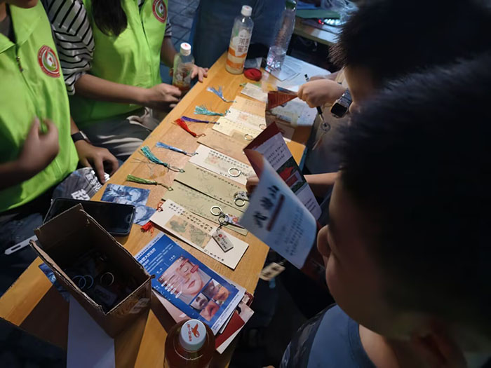 健康集市中央,一張長桌被改造成“紅色手作工坊”。最熱鬧的要數(shù)“紅色猜謎”攤位——每個(gè)盲盒里隨機(jī)藏有“紅三軍”臂章和“紅色手跡”書簽,人們還能聽到對應(yīng)歷史的講解。