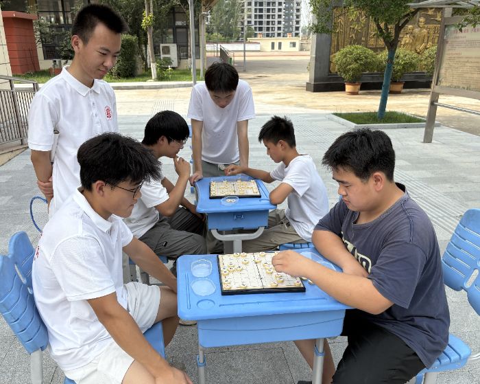 象棋桌前,志愿者本想讓著學生們,可沒想到有個男生棋藝精湛,幾步下來就讓志愿者陷入了困境。志愿者認真思考應(yīng)對之策,男生則用手勢催促著,臉上帶著一絲小得意。這場棋藝切磋,沒有輸贏之分,志愿者在孩子身上看到了不服輸?shù)捻g勁,孩子也從志愿者的認真態(tài)度里感受到了尊重。