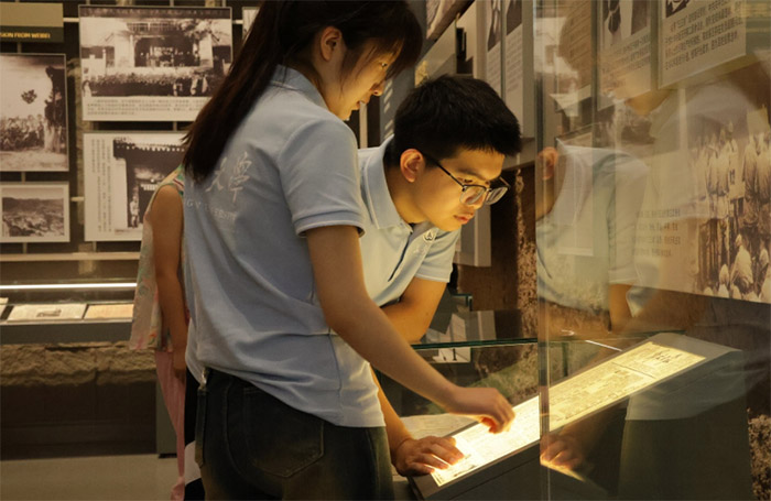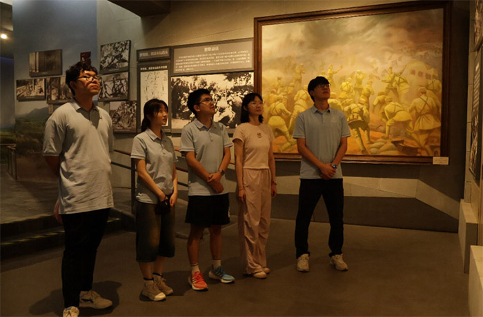 實(shí)踐隊(duì)成員在紀(jì)念館學(xué)習(xí)戰(zhàn)役背景重溫革命先輩的浴血奮戰(zhàn)歷程